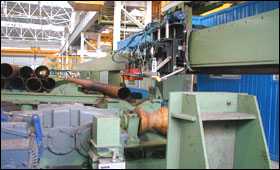 鋼管螺旋前進(jìn),探頭原地跟蹤檢測